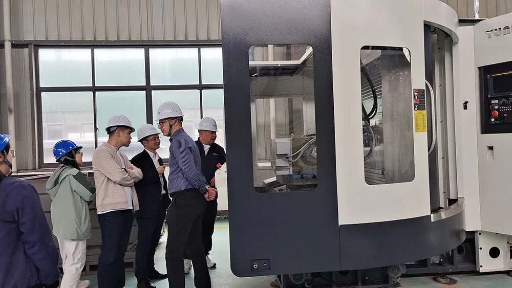The guests watched our production equipments and inspection equipments especially appreciated the gantry machining center.which processed large parts.The customer agreed with the complete inspection processes of our production enterprises, and praised the concept of our company to control the quality of products.