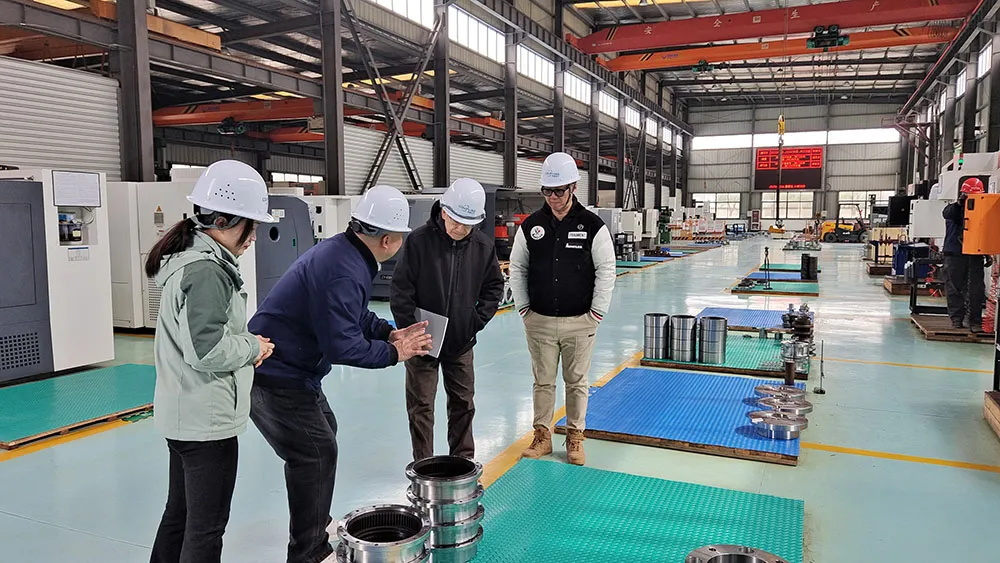 Mr. Shi Guangzong introduced to the customer the processing process of the components, from the inspection and processing of each raw embryo component to the completion of the semi-finished product, size, appearance and inspection, our workers and inspectors are meticulous in accordance with the customer's drawings.