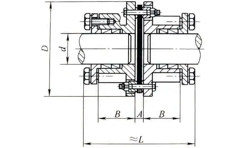 The DMA Single Type Elastic Diaphragm Coupling features a unique design that incorporates a flexible diaphragm made from high-quality materials such as stainless steel. This diaphragm is the key component that provides flexibility and elasticity, allowing the coupling to compensate for misalignments between connected shafts. The main components of the coupling include: