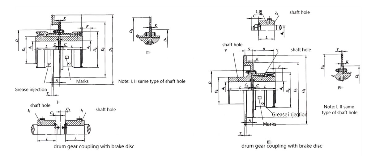 Basic parameters and main dimensions of GCP type drum gear coupling with brake disc