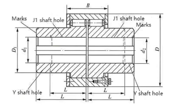 1. The outer edge of the two half couplings and the inner edge of the jacket are made into a half-element groove with the same radius, which is combined into a pinhole to embed the pin. The driveshaft half coupling drives the jacket through the pin, and the jacket drives the driven shaft half-coupling through the pin to rotate to transfer torque.